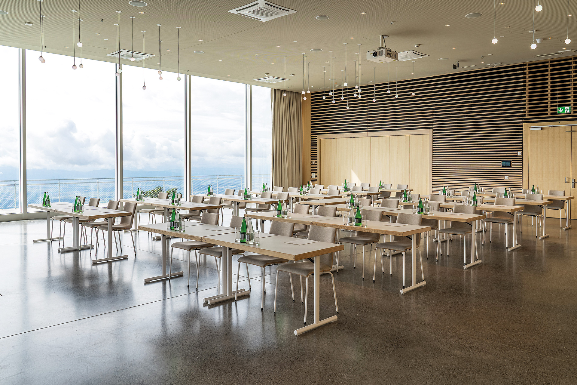 eignet sich derweil auf 25 m² für exklusive Seminare für 10 und Meetings bis 30 Personen (ab CHF 250.–). Ergänzt wird das Raumangebot durch kleinere Räume wie Chasseral und Röti für Workshops oder Breakout-Sessions (beide ab CHF 250.–). Alle Räume sind mit moderner Seminartechnik, WLAN und variabler Beleuchtung ausgestattet.