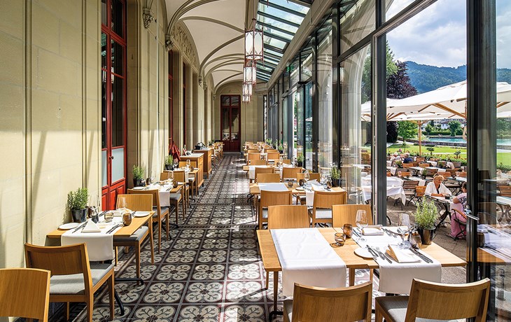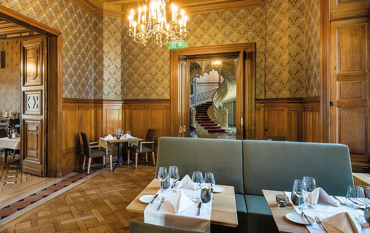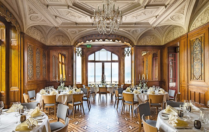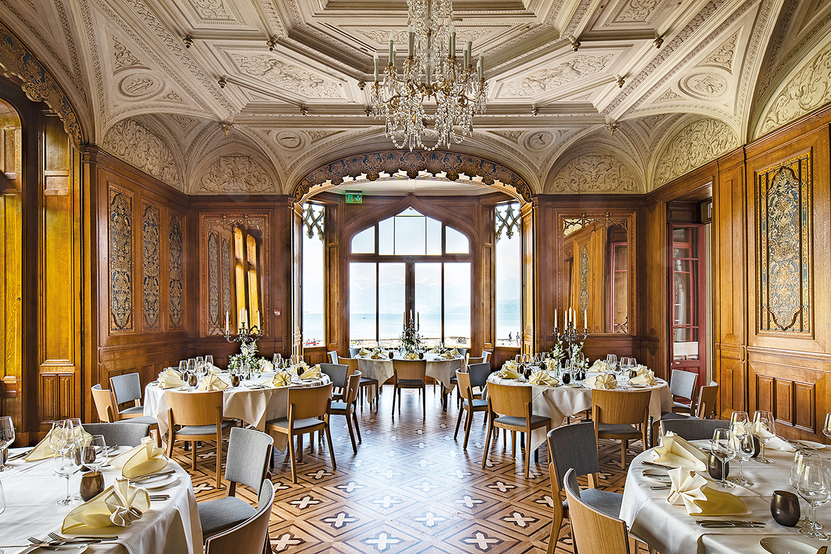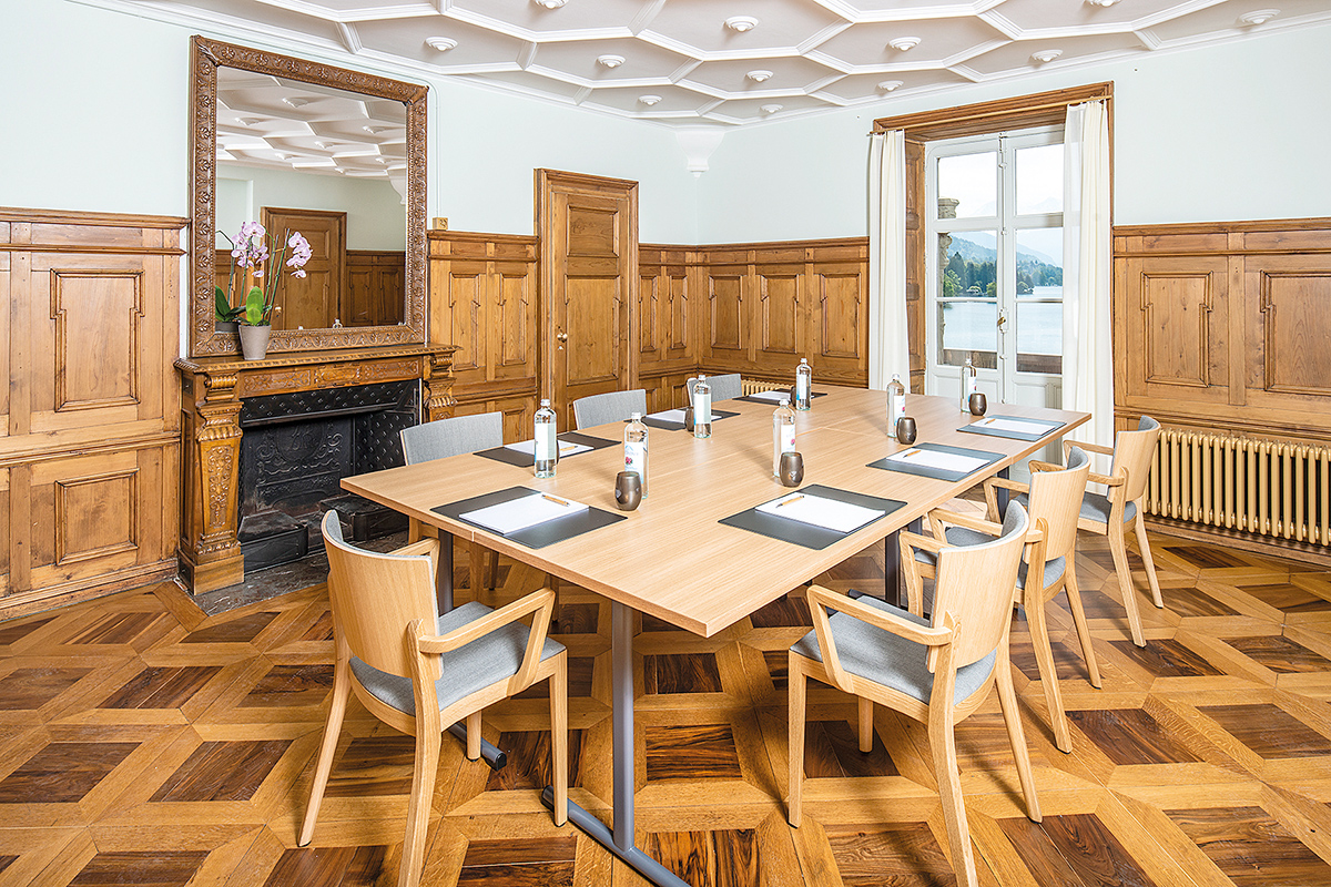 , der auf 63 m² für bis zu 70 Personen Platz bietet (ab CHF 1200/Tag) und modular mit drei Salons mit je bis zu 12 bis 30 Sitzplätzen kombiniert werden kann.