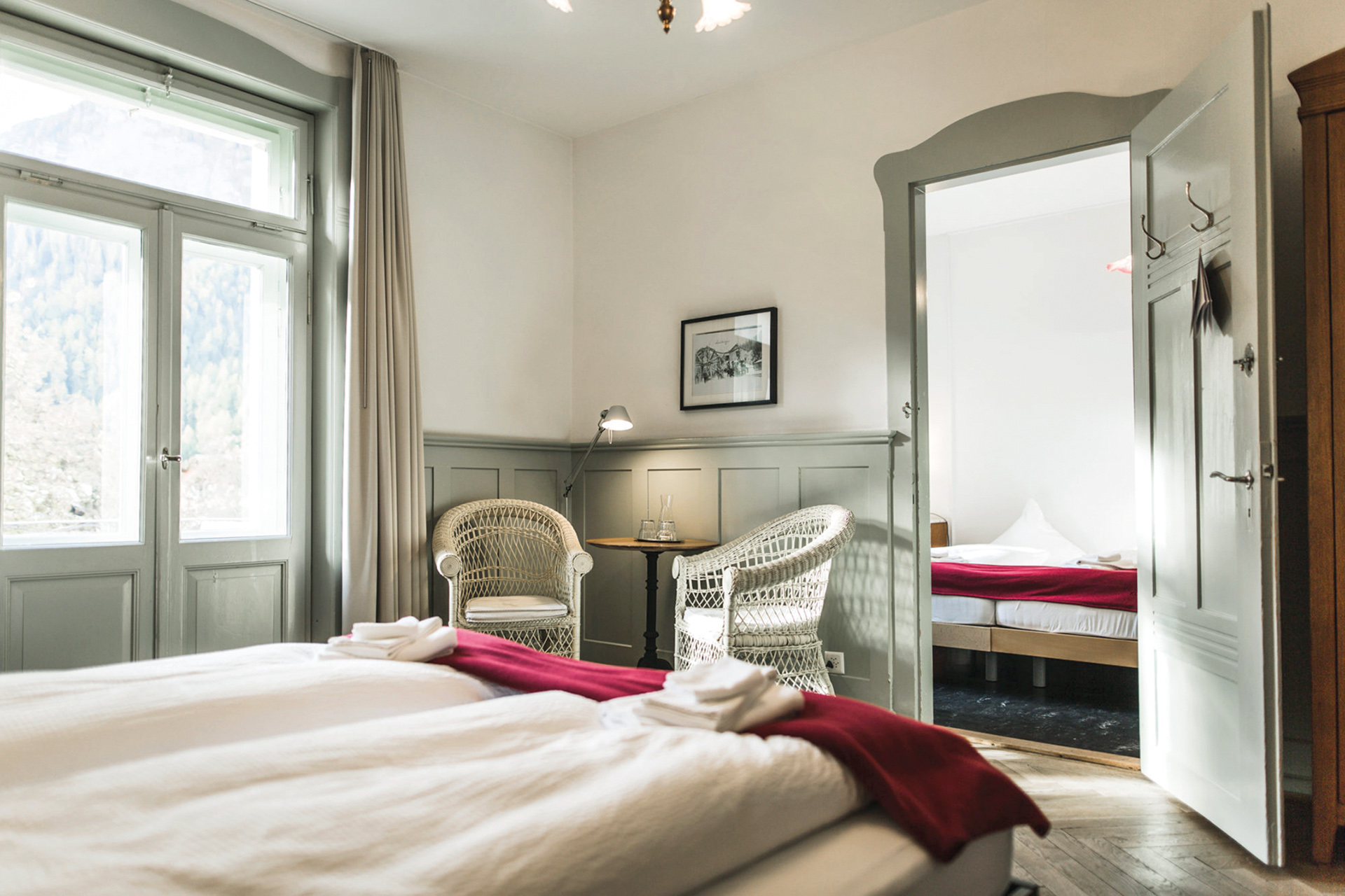 Wer sein Büro alleine oder auch in kleinen Gruppen für eine ganze Arbeitswoche in die Berge verlegen möchte, findet im Kurhaus Bergün mit dem Angebot Kur(Home)Office von Sonntag bis Freitag ein besonderes Workation-Angebot. Damit lässt sich Arbeit mit dem Erholungseffekt der Berge und den Annehmlichkeiten eines Hotels verbinden. Inklusive reichhaltigem Frühstücksbuffet, Abendessen (Drei-Gang-Menu), eigener Büro-Wohnküche und freiem Zutritt zum KurBad (4 Nächte ab CHF 722 pro Person).