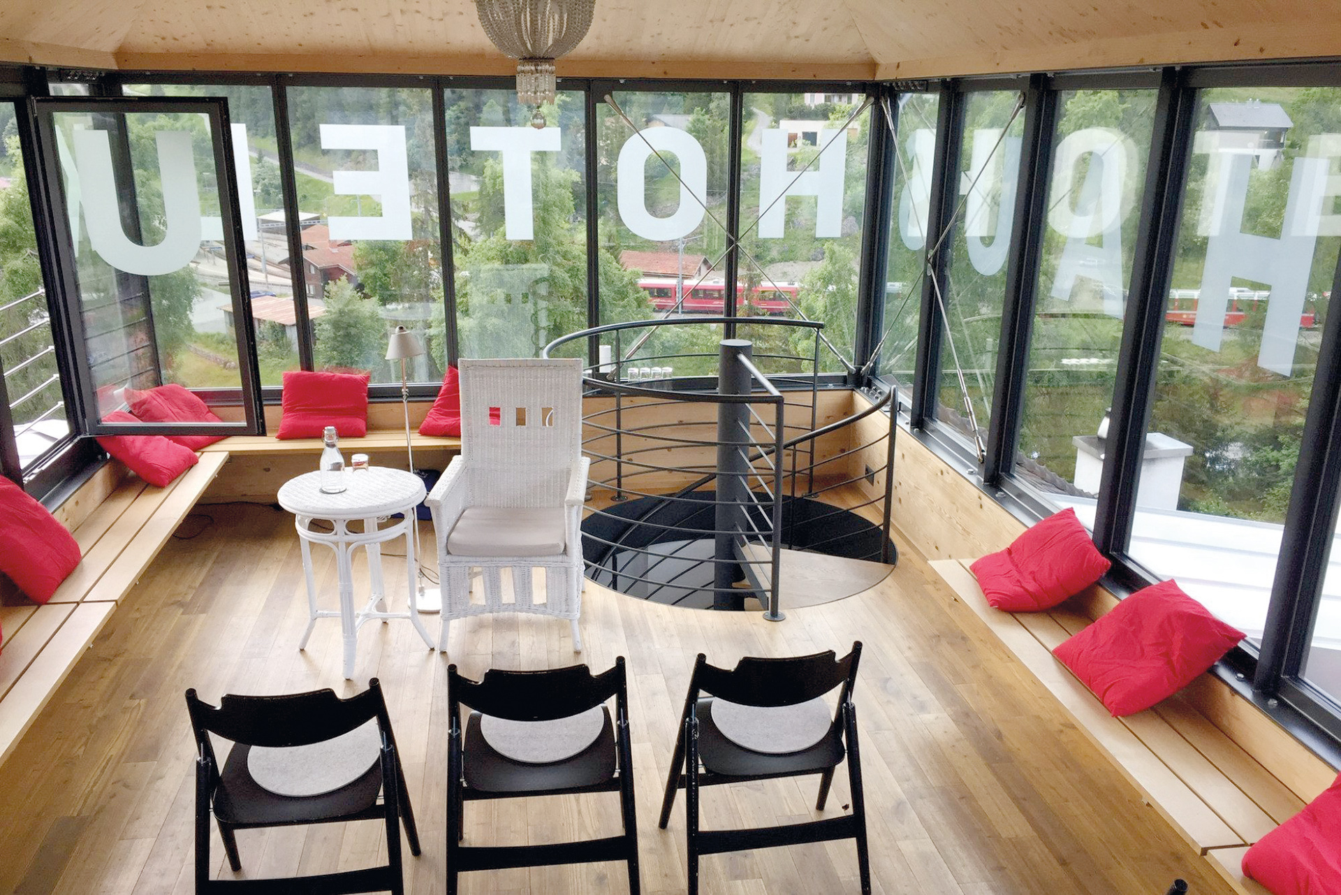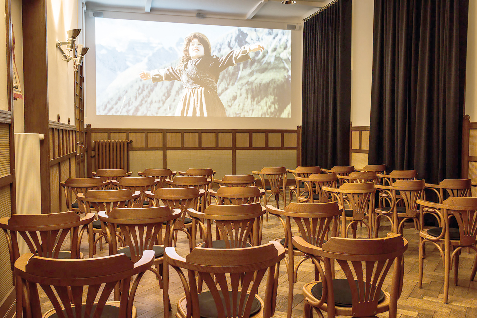 (CHF 165.00/Tag) im sechsten Stock mit einmaligem Panorama eignet sich für Seminare mit bis zu acht Teilnehmenden. Das historische Kino