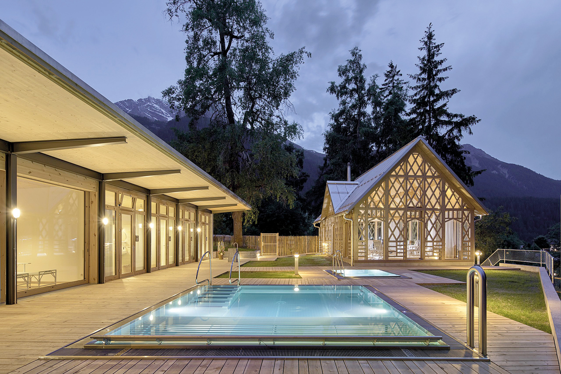 zum Verweilen und Wohlfühlen ein. Neben einem Outdoor-Sprudelbecken und einer Sauna im historischen Eiskeller verfügt das Bad über einen Ruhepavillon, der für Retreats und Workshops ausserhalb der regulären Öffnungszeiten auch exklusiv reserviert werden kann.
