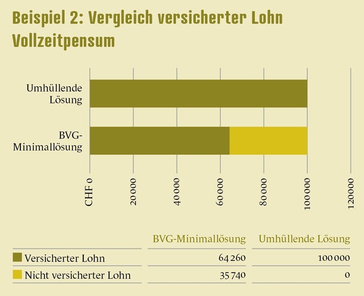 Sowohl bei tieferen als auch bei höheren Einkommen ist der versicherte Lohn im Obligatorium begrenzt. Genau hier entsteht Spielraum für überobligatorische Lösungen. Viele Unternehmen gehen bewusst über das gesetzliche Minimum hinaus, etwa durch die Versicherung zusätzlicher Lohnbestandteile, einen reduzierten Koordinationsabzug oder höhere Sparbeiträge.